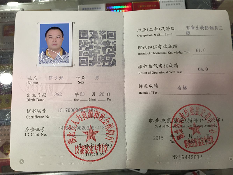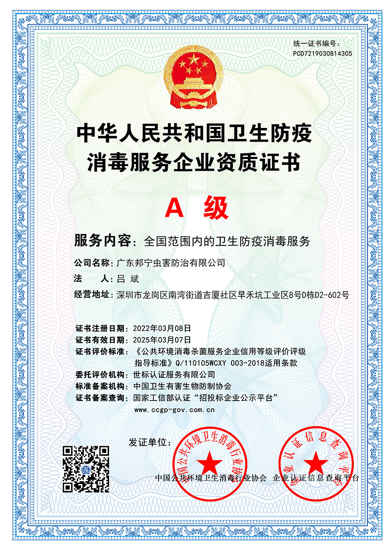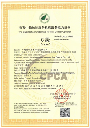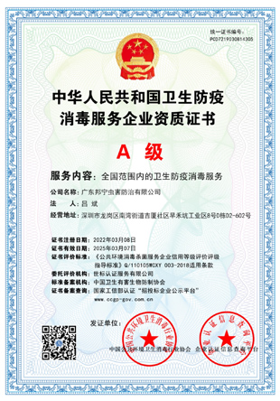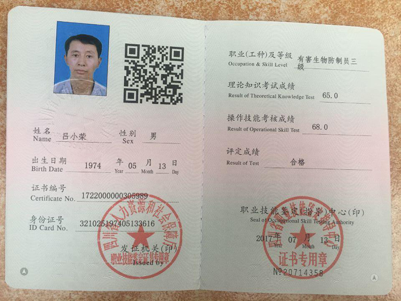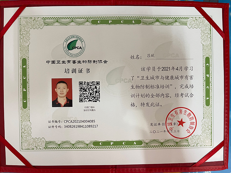 中國(guó)衛(wèi)生有害生物防制服務(wù)機(jī)構(gòu)服務(wù)能力證書(shū)