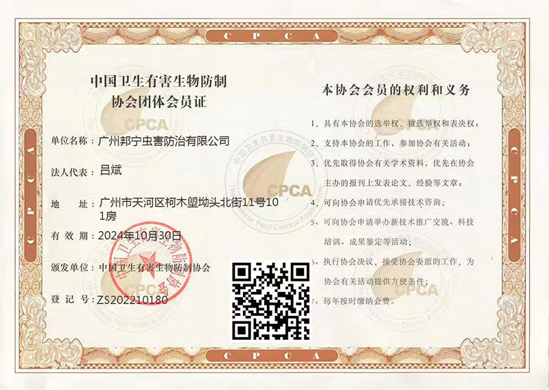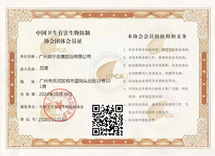 中國(guó)衛(wèi)生有害生物防制協(xié)會(huì)團(tuán)體會(huì)員證